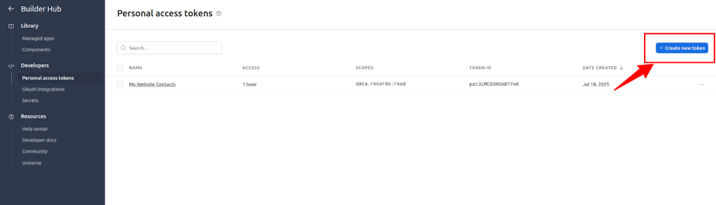 - Under the “Go to Developer Hub,” click on “Create token” -> “Create New Token”